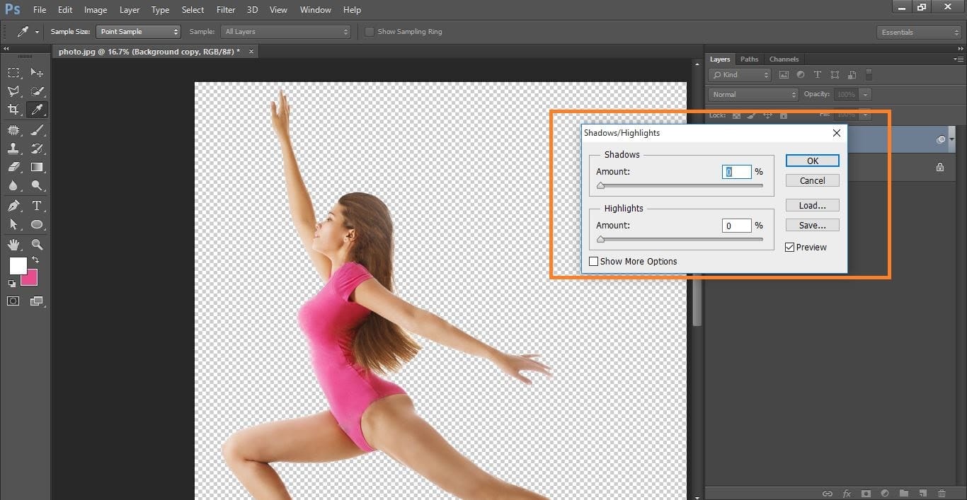 Now go to adjustment> and select shadow/highlights> and do with them