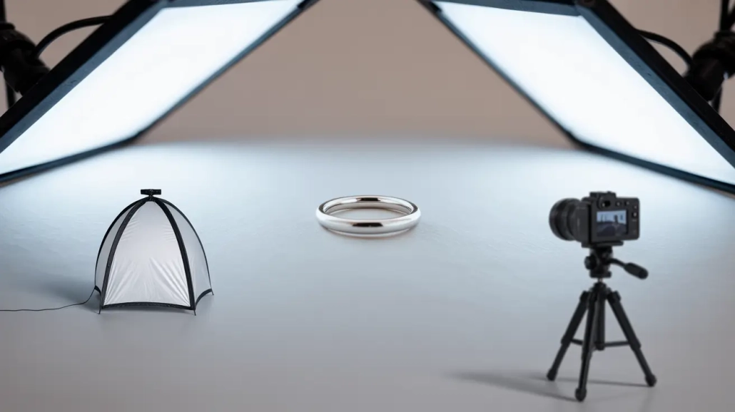 Light tents cut reflections. They give clean white or black backgrounds. GemLightbox and similar boxes are built for jewelers. They speed the shoot and keep color steady. (Picup Media)